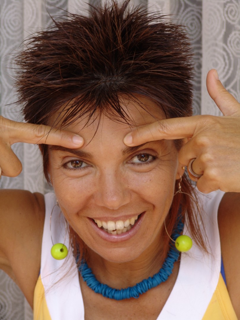Explica contes des de sempre: primer a ella mateixa, quan de petita se li passaven les hores parlant davant el mirall. Després, quan el 1986 els amors la porten a fer de follet a la muntanya i li regalen un fill a cada cantó del coixí.